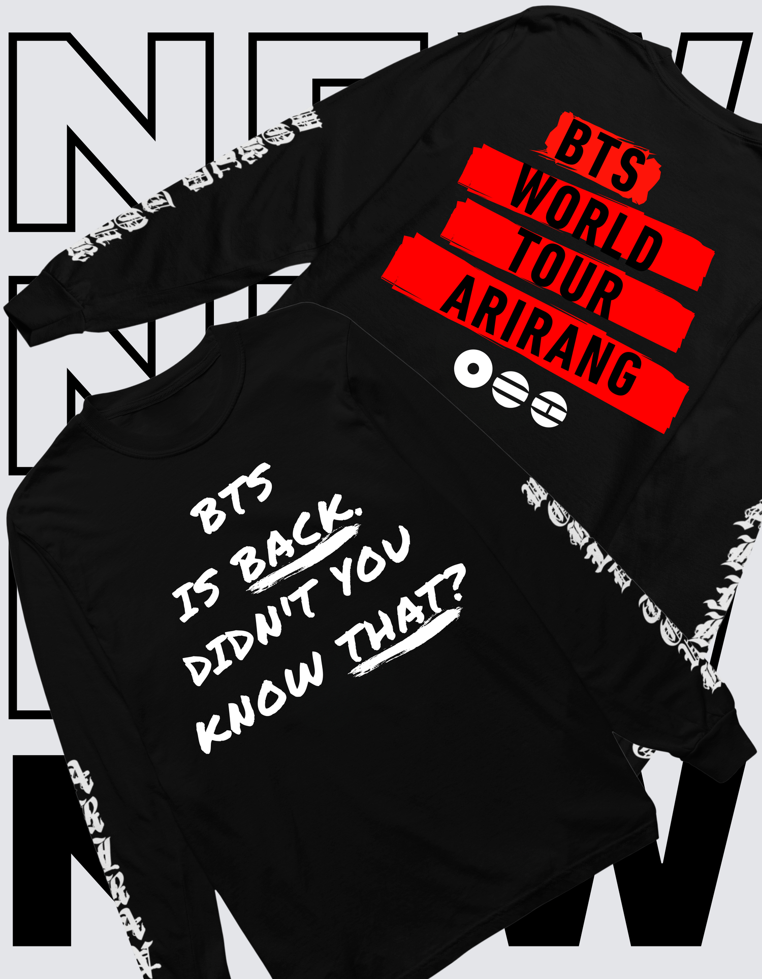 Inspired by Suga's iconic long sleeve t-shirt worn at the Yet to Come in Busan/World Expo 2030, comes our very own BTS World Tour Arirang version!